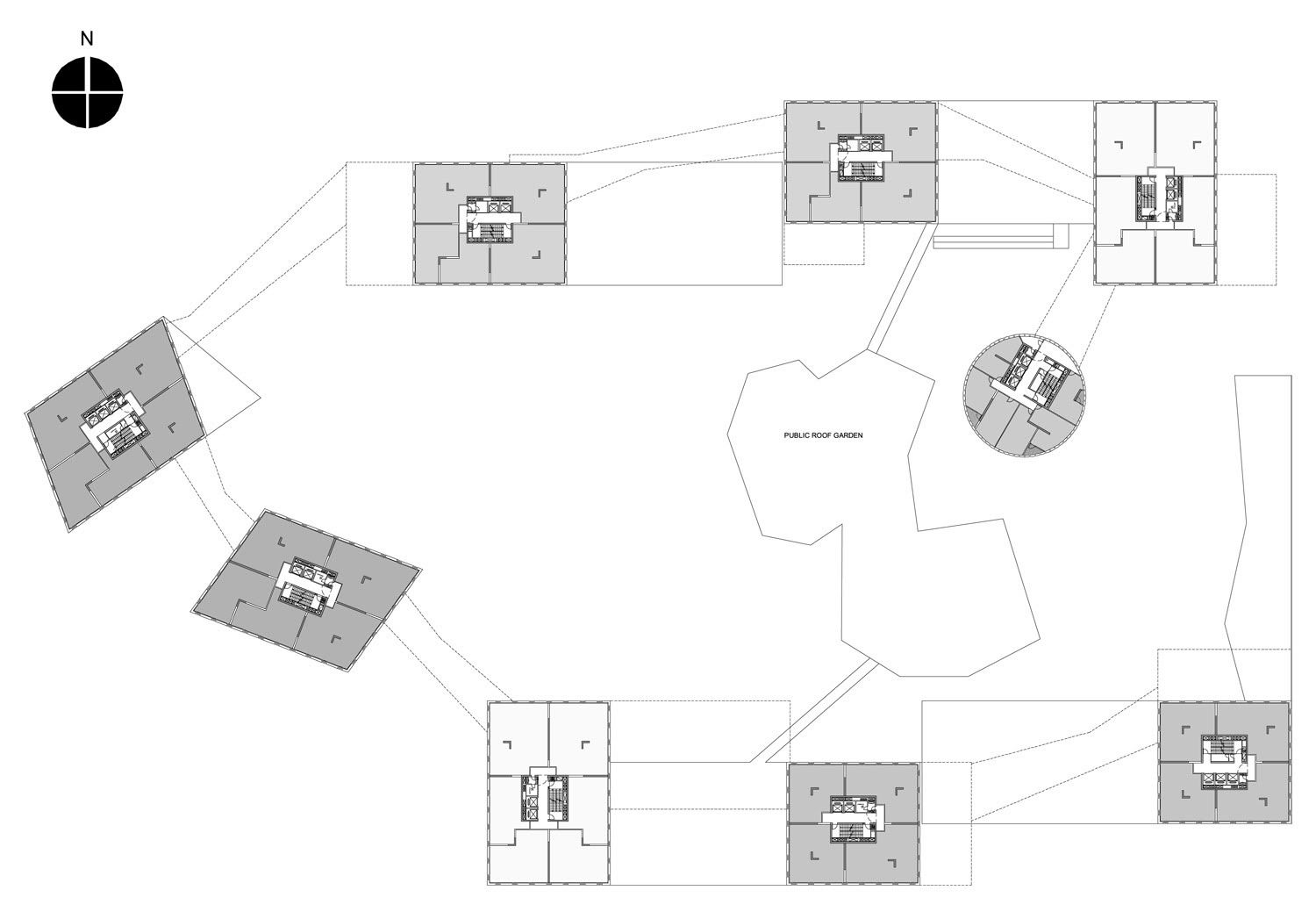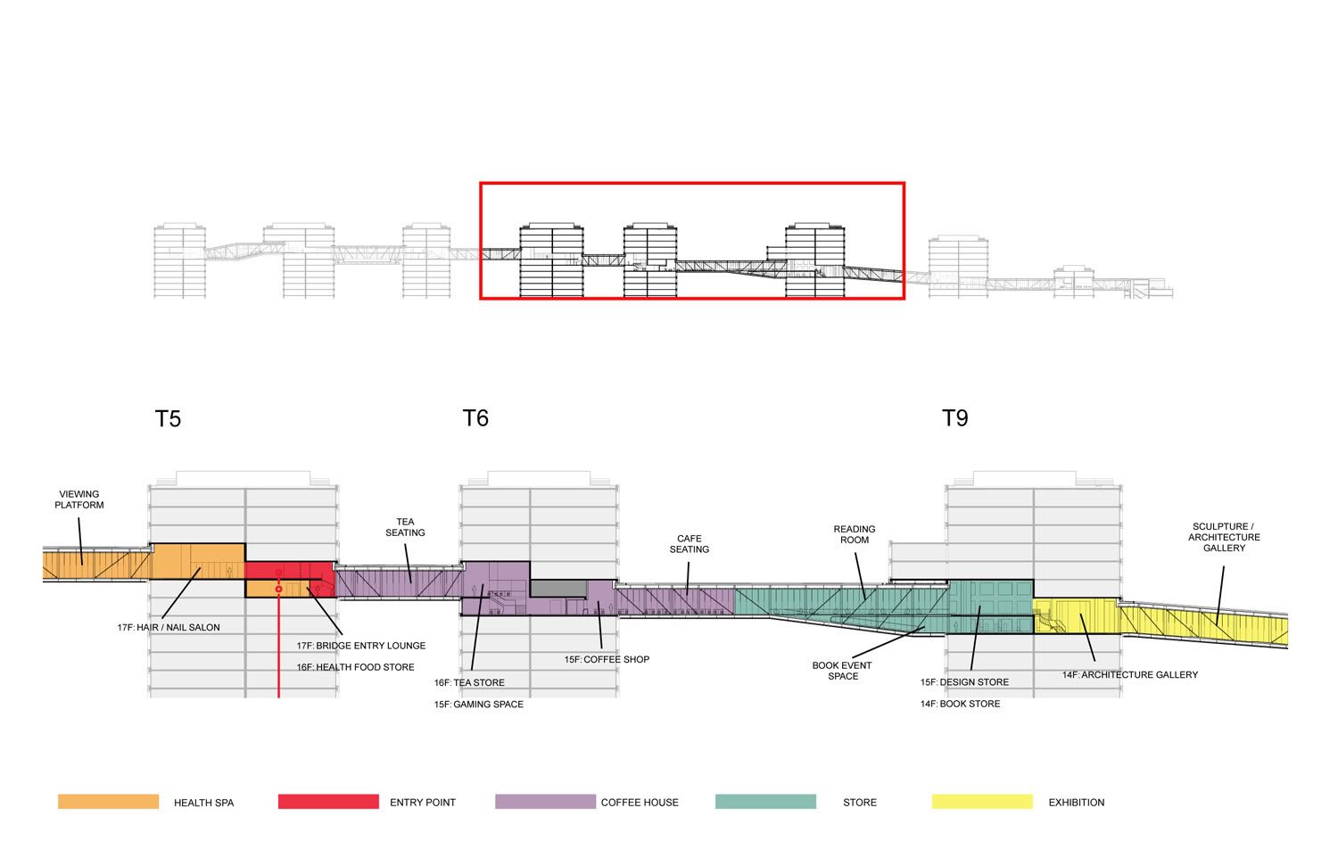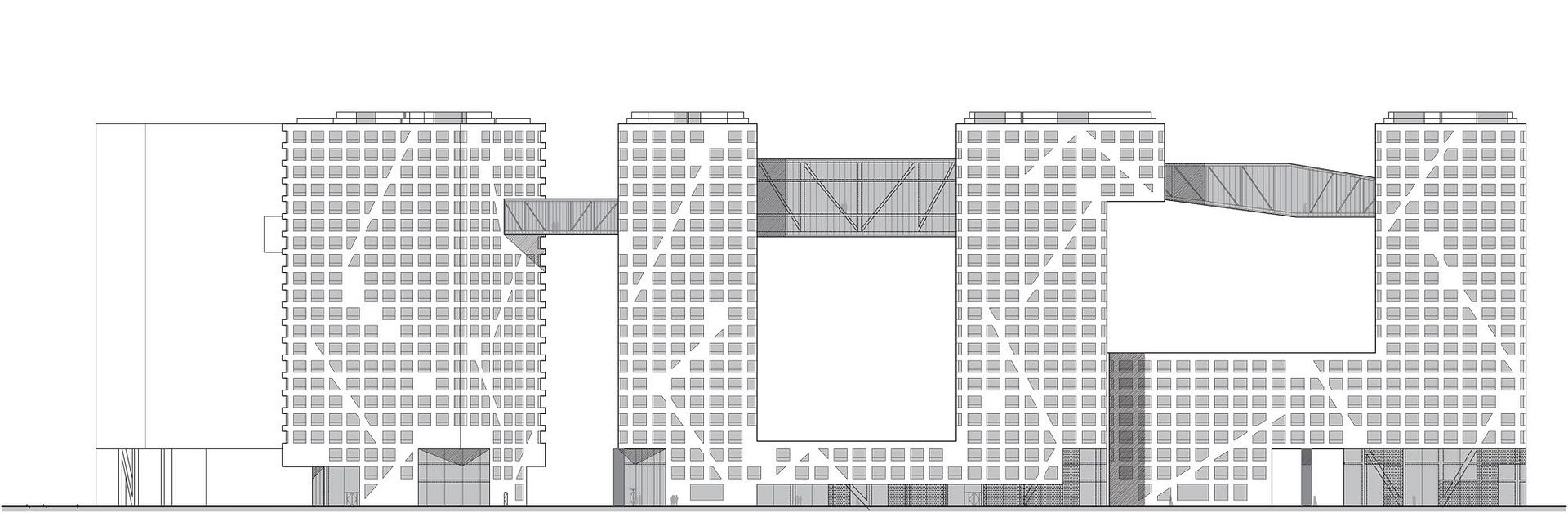 Giới thiệu công trình. Tổ hợp công trình Linked Hybrid có tổng diện tích 220 000 m2, bao gồm 8 tòa tháp được nối với nhau bằng 8 cầu nối, tạo thành 1 vòng liên kết. Mỗi cây cầu nối vừa là lối đi liên kết giữa các tháp, vừa là nơi bố trí các dịch vụ công cộng. Tổ hợp công trình này được xây dựng ở gần đường vành đai của Bắc Kinh. Nhằm khẳng định xu hướng phát triển đô thị hiện tại ở Trung Quốc, các tòa nhà được xây dựng theo hướng mở, có lối vào ra ở mọi mặt. Ngoài 750 căn hộ, công trình này còn gồm có các không gian công cộng, thương mại, giải trí, khách sạn và cả trường học.