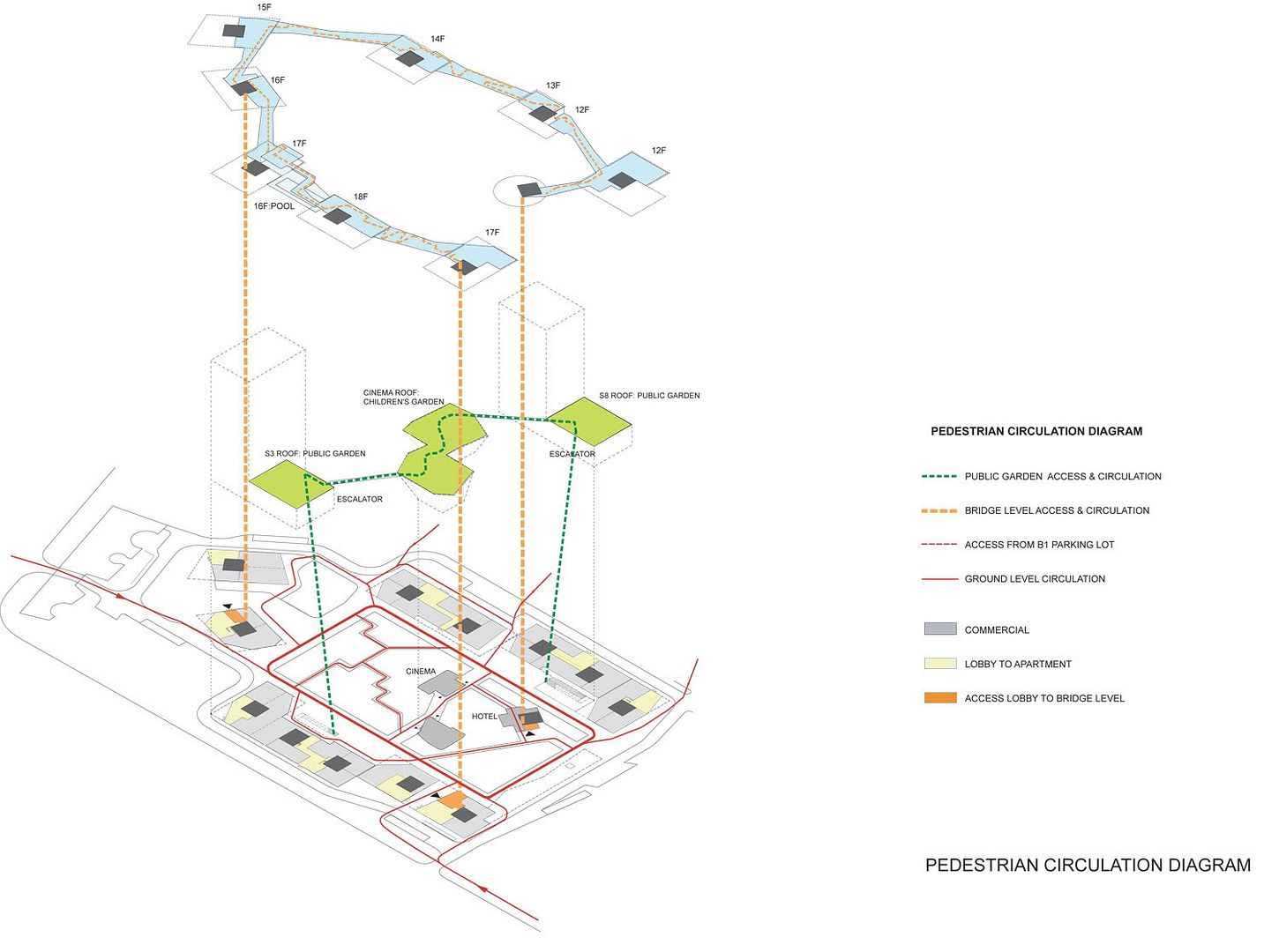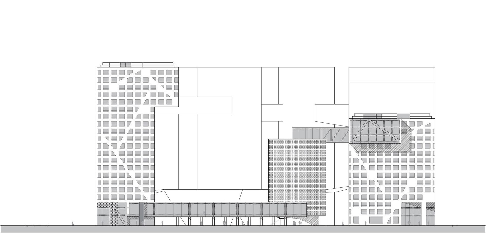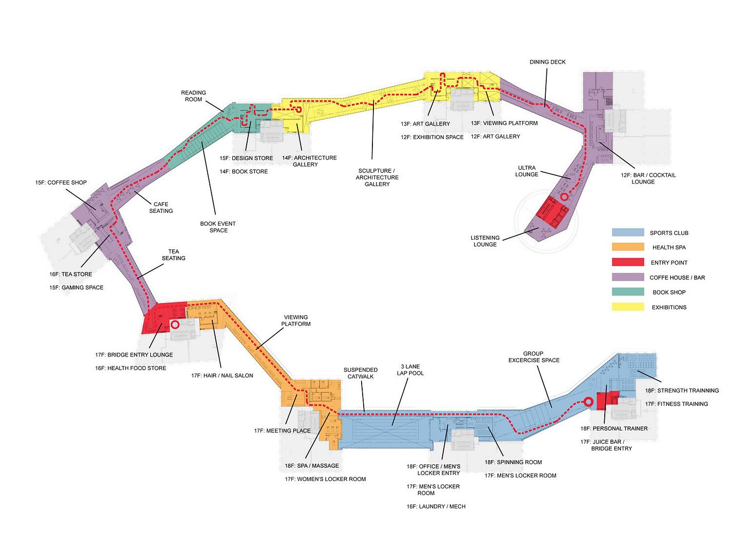 Giới thiệu công trình. Tổ hợp công trình Linked Hybrid có tổng diện tích 220 000 m2, bao gồm 8 tòa tháp được nối với nhau bằng 8 cầu nối, tạo thành 1 vòng liên kết. Mỗi cây cầu nối vừa là lối đi liên kết giữa các tháp, vừa là nơi bố trí các dịch vụ công cộng. Tổ hợp công trình này được xây dựng ở gần đường vành đai của Bắc Kinh. Nhằm khẳng định xu hướng phát triển đô thị hiện tại ở Trung Quốc, các tòa nhà được xây dựng theo hướng mở, có lối vào ra ở mọi mặt. Ngoài 750 căn hộ, công trình này còn gồm có các không gian công cộng, thương mại, giải trí, khách sạn và cả trường học.